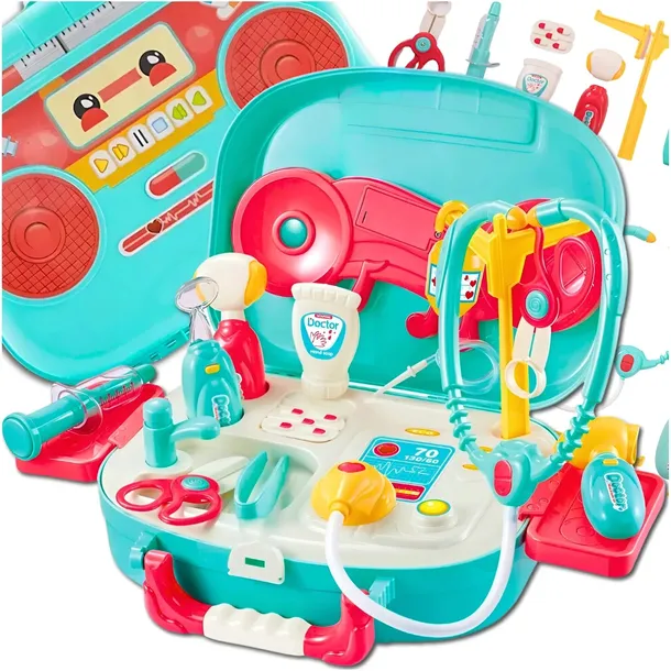 Magiczna walizka z pełnym, medycznym wyposażeniem to doskonała zabawka edukacyjna, która dzięki ciekawym elementom, kolorom, oraz efektom świetlnym i dźwiękowym sprawi wiele radości Twojemu dziecku i zapewni ciekawą zabawę.