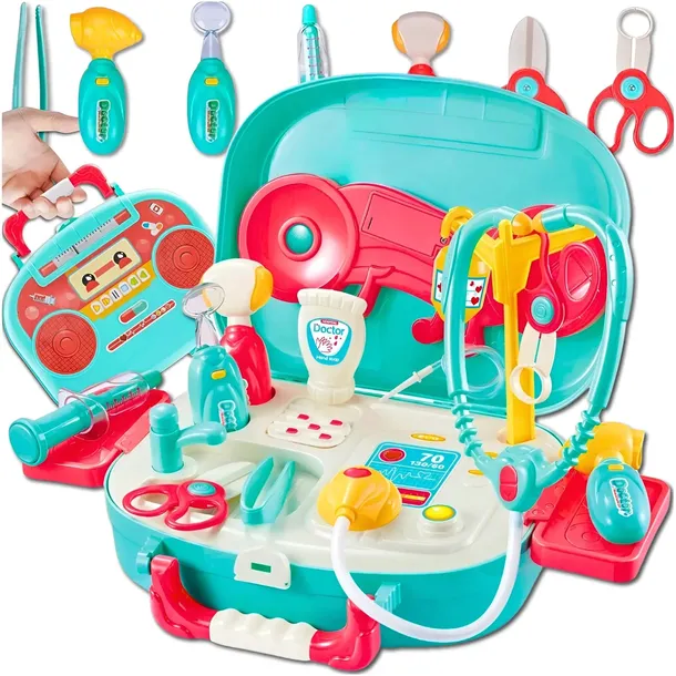 ✅ Wybierz nasz zestaw lekarski! Zawiera wszystkie niezbędne akcesoria, w tym stetoskop, otoskop, młoteczek i inne narzędzia, a także efekty świetlne i dźwiękowe, które sprawią, że dziecko poczuje się jak prawdziwy lekarz. Idealna zabawka, która rozweseli malucha i pomoże oswoić go z wizytami u lekarza!
