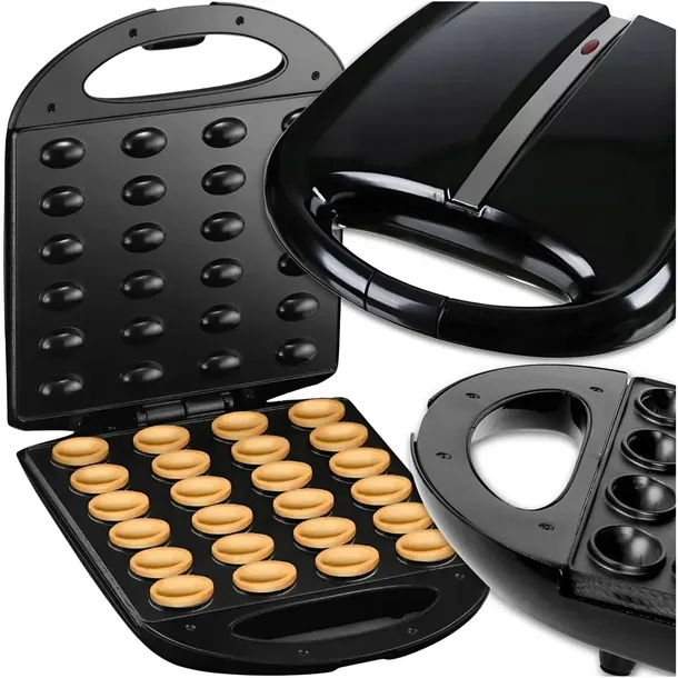 Ten opiekacz pozwala upiec 24 połówki orzeszków jednocześnie, oferując szybkie, chrupiące i idealnie wypieczone ciasteczka.